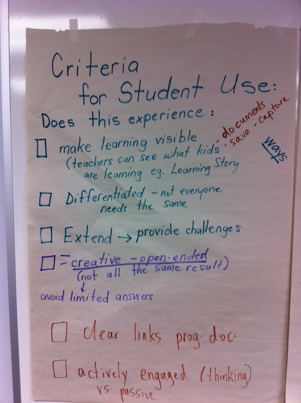 The visit began with an opportunity to meet with Gwen in her office to discuss some background information and leadership philosophies. Gwen is very interested in how technology can support and enable learning. Gwen states emphatically that she is “NOT a techie”, but has worked hard to establish a culture to leverage the best uses within her school. One of the resources that is shaping Gwen’s thinking is the book Visible Learning. She has noted a few key quotes from the book that really resonated with her, and reads them often. Some of the key points include:
