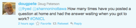 I decided to see what would happen if we crowd sourced answers to this question. I popped the question out onto twitter hoping that some of my PLN would spot the request and take a moment to respond. The plan worked great as I received a number of responses during the work time allotted.